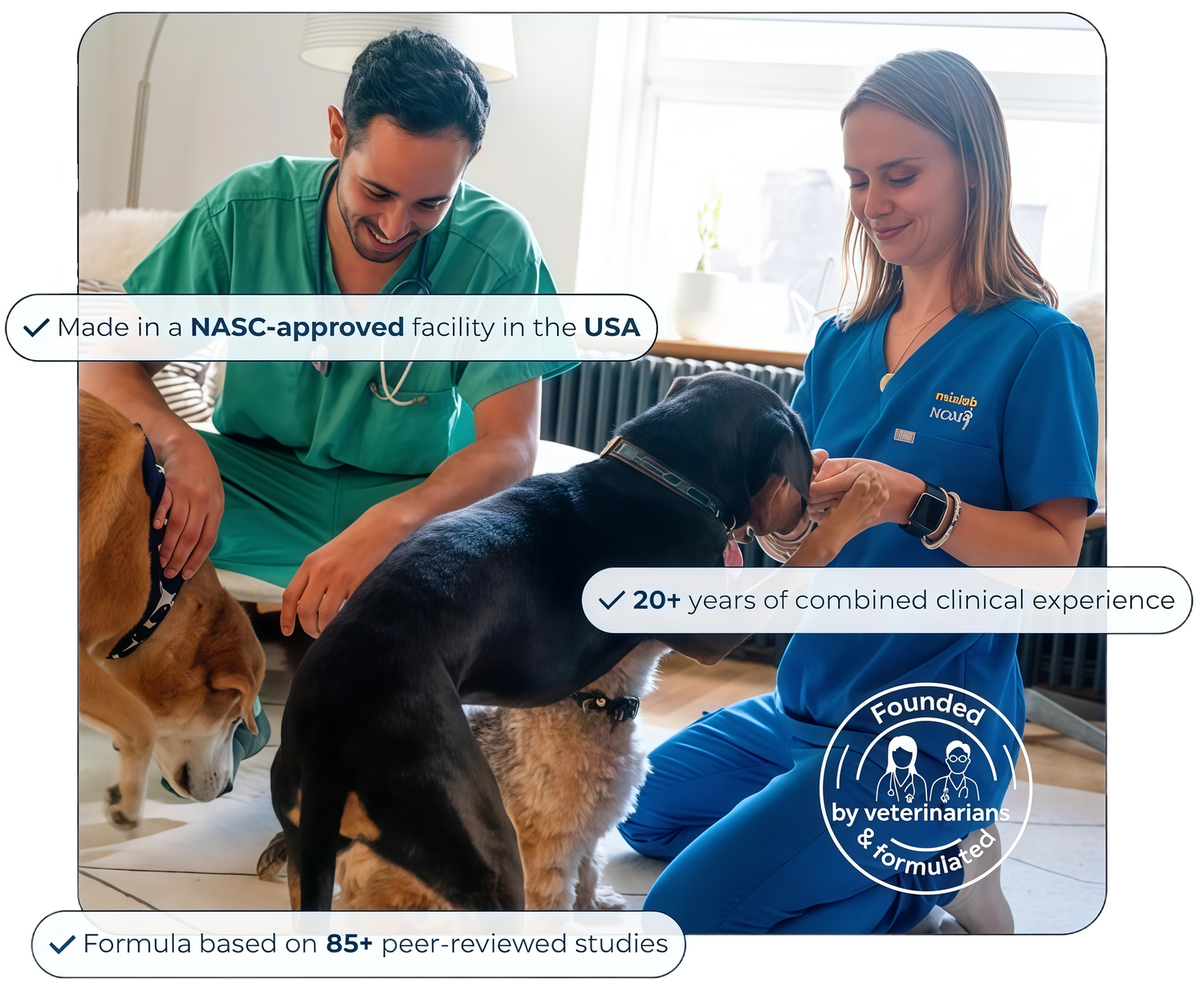 “Our goal was simple: create a supplement we’d feel proud to recommend in the exam room, and safe giving to our own dogs at home.”